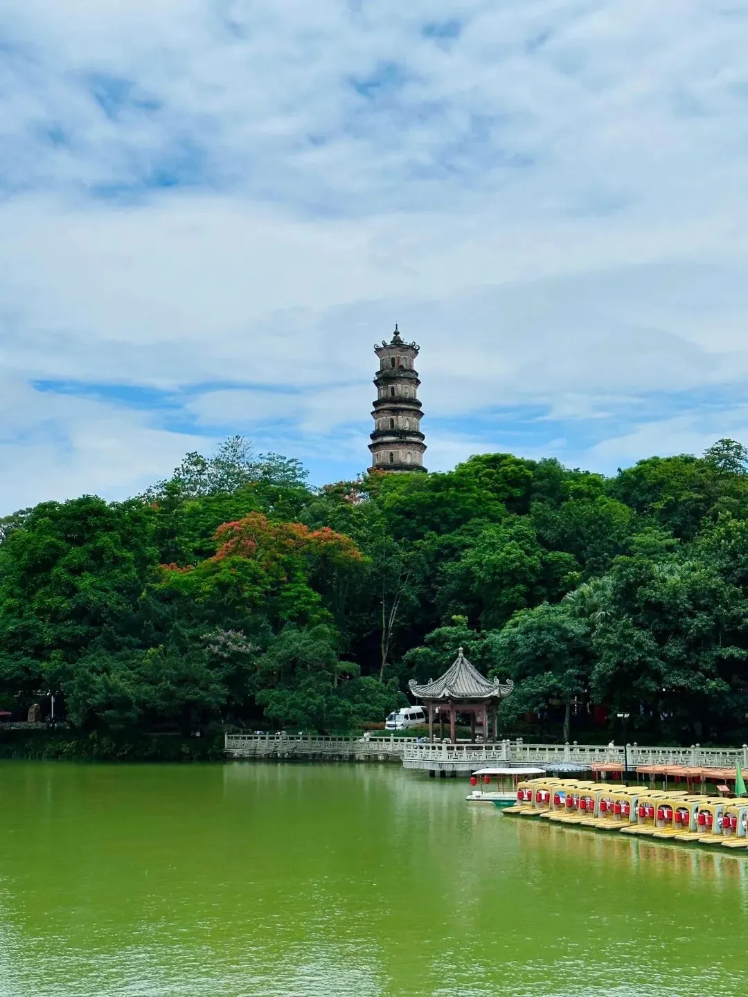 ✅惠州西湖:以六湖、九桥、十八景闻名,是惠州的经典地标。苏东坡当年在此留下“一更山吐月,玉塔卧微澜”的千古名句。环湖骑行+湖心亭拍照是标配玩法。五一期间湖上荷花初放,塔影映着荷露,美不胜收。