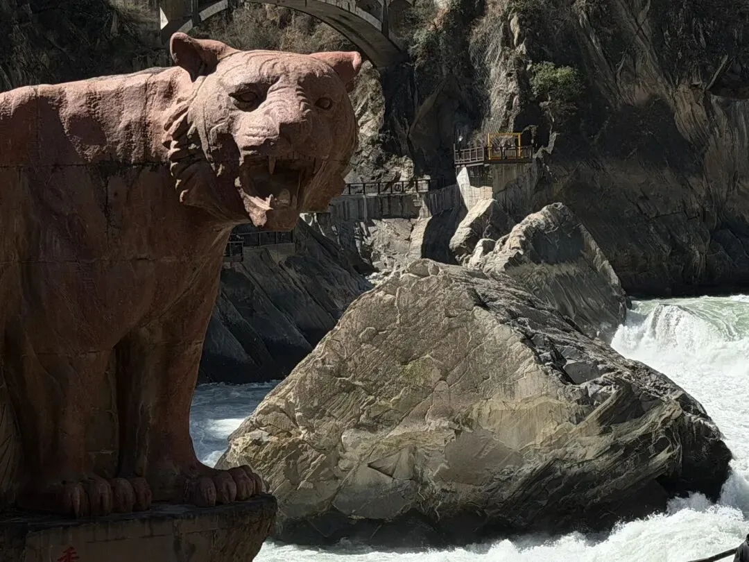 从第二天之后,我们就一路前往迪庆,也是旅途的核心部分。第一站就是王炸—虎跳峡,有趣的是壮美的景色不在峡谷本身,而是一条隐藏在山上的徒步路线。上虎跳峡景区本身并无太多说法,45块的门票走下去只能看到一条湍急的金沙江和一块虎跳石,以及一些虚无缥缈的神话故事。