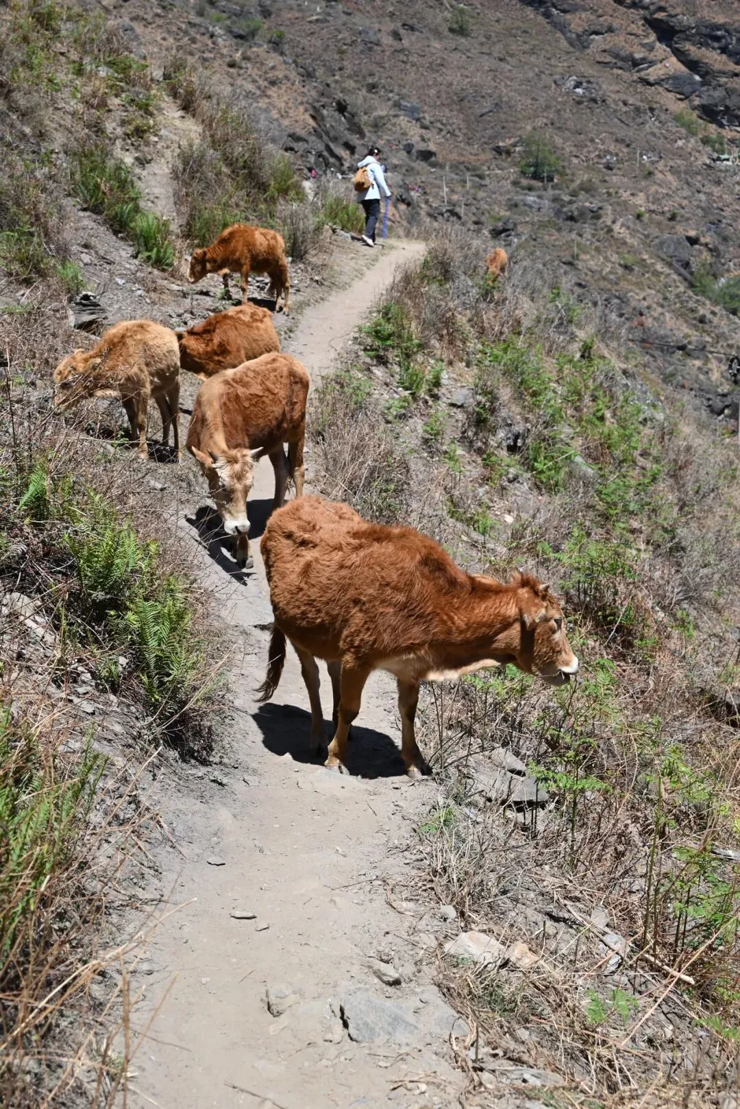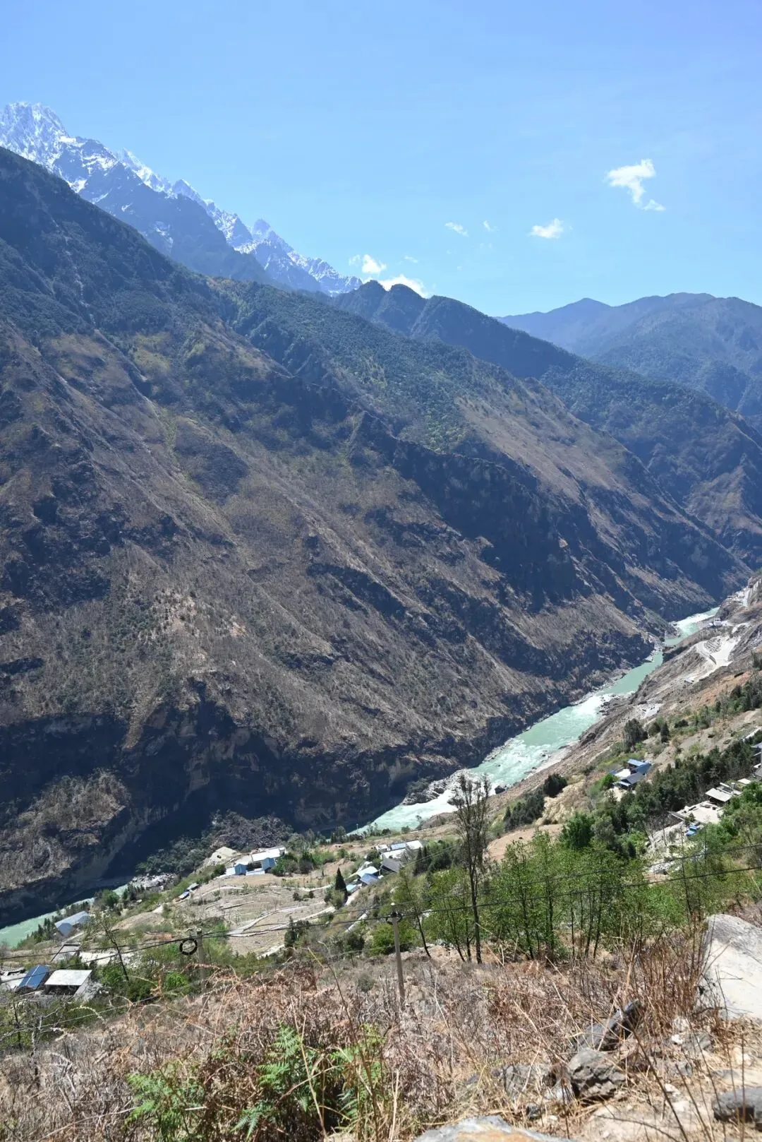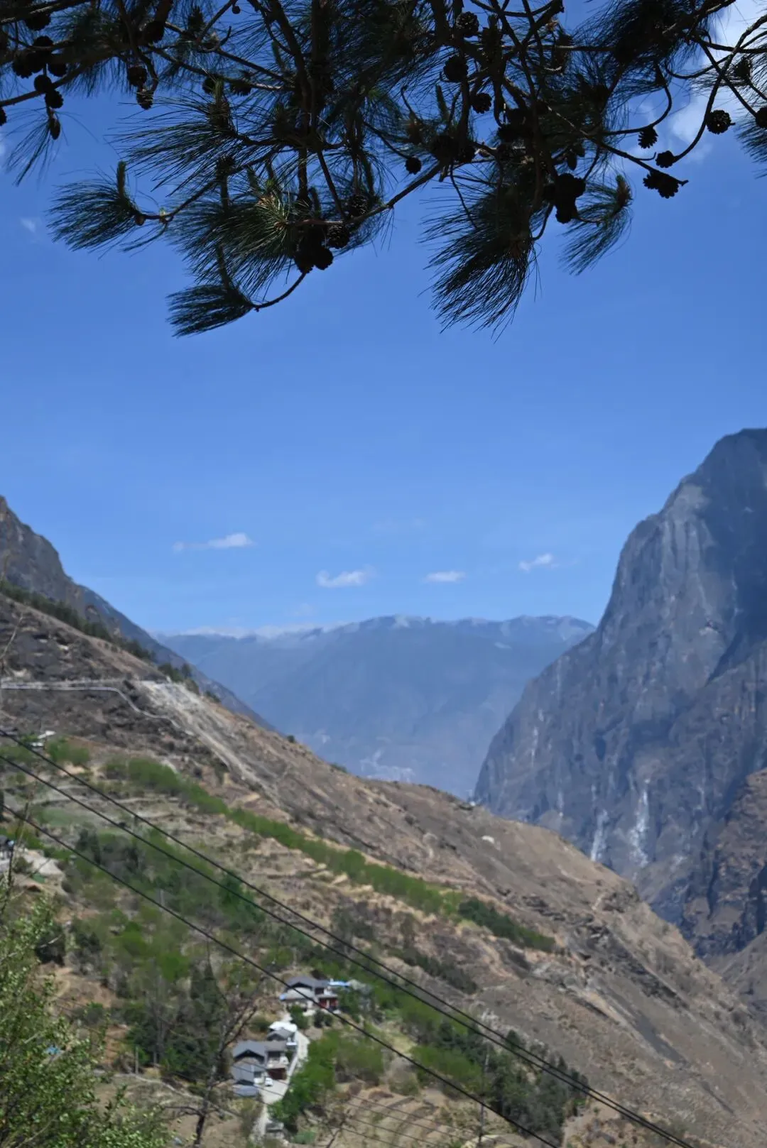 真正让虎跳峡闻名中外的是一条不起眼的徒步路线,一条隐藏在山上需要专门拼车上去、悬在半山腰的土路。除去难找,还很容易走错(我们十分难绷的爬了半天山才发现走错了……)。但就是这条徒步线路,全程都可以看到玉龙雪山最完整的风貌和若隐若见的壮丽哈巴雪山。所谓世之奇伟、瑰怪、非常之观,常在于险远。