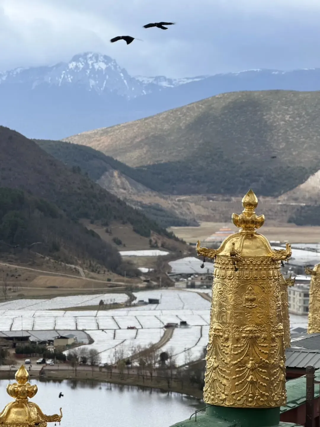 第三天我们决定在香格里拉城中逛一天,看看独克宗古城和松赞林寺。松赞林寺是这一路上唯一能感受到厚重感的古城,金色薄雾之下,是遥想佛道的底蕴。虽是重建的建筑,但仍十分有灵气,雪山脚下,金塔之上,乌雀飞过,带有人文和自然最混为天成的美感。我始终相信,人文之古不是建筑一定要以前未曾破坏的,而是要有当年气韵和灵性。松赞林寺目前依旧是佛家圣土,香火不绝,虽是重建,仍然能感受出来信仰之力凝结的精华。