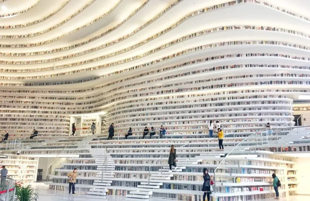 - 滨海图书馆:大名鼎鼎的网红“书山”,设计感极强,拍照超出片,在书海中静坐阅读,氛围感直接拉满。