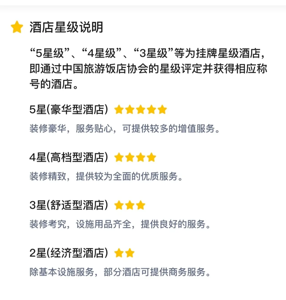 实际上五星级酒店也分为很多级别,比如入门五星、标准五星、高端五星、豪华五星、入门奢华五星、标准奢华五星、顶级奢华五星,后面会写文章科普一下。