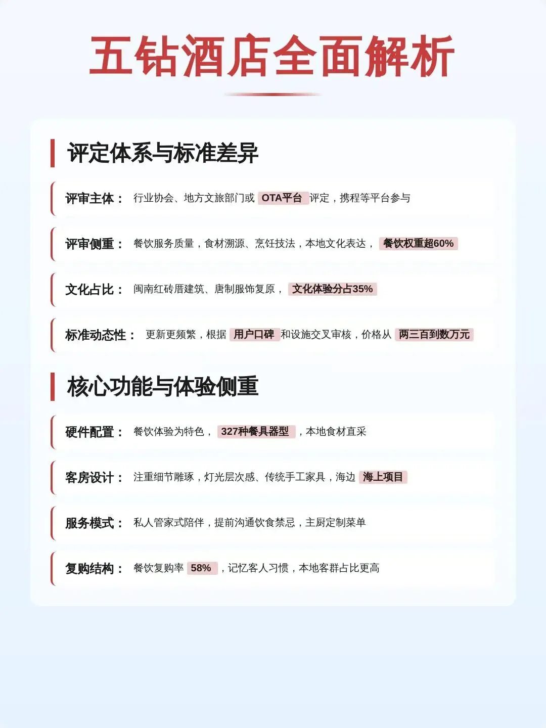 因为特色五星级评定标准有一定的局限性,无法完全涵盖豪华酒店与奢华酒店的所有特色和优势,如文化特色、艺术氛围等难以量化评估。