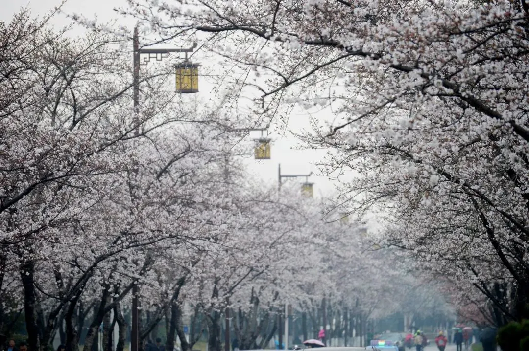 走在鉴真路上,只见樱花盛放,满眼粉色和白色,唐风建筑鉴真图书馆成为最佳的赏樱背景。再移步,走进鉴真大和尚当年曾任住持的大明寺,鉴真纪念堂前、日月湖边、鼓楼下、平山堂畔,洁白似雪,灿烂如霞,这里可谓扬州樱之源。