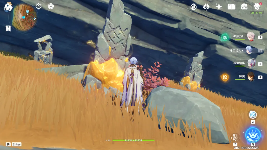 注:破坏一个「磐键」需要多次结晶弹的攻击,需要旅行者找到附近的全部笼状「岩元素」聚合物并使用。