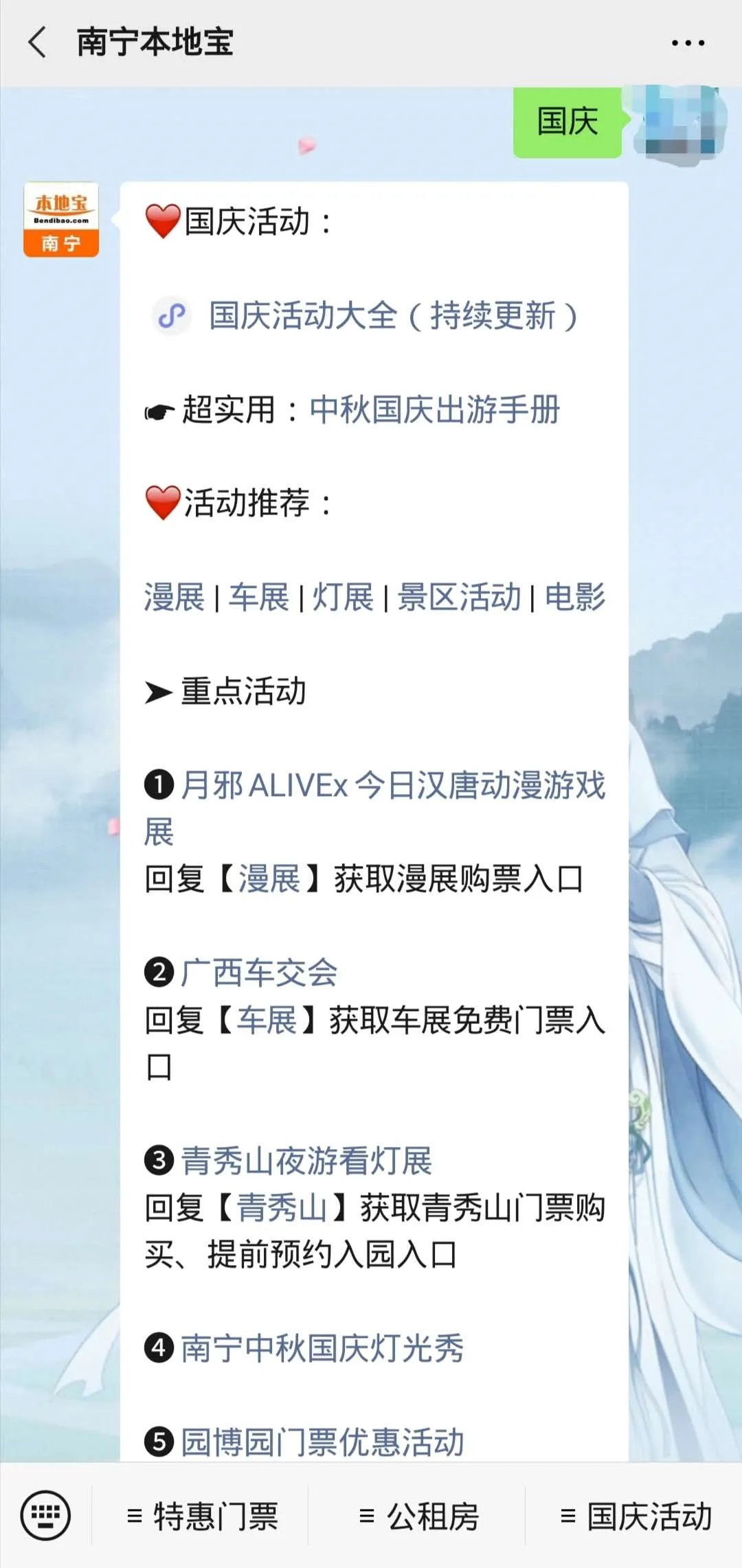 回复“国庆”:获取国庆漫展、车展、景区活动等时间地点、门票价格及购票入口等