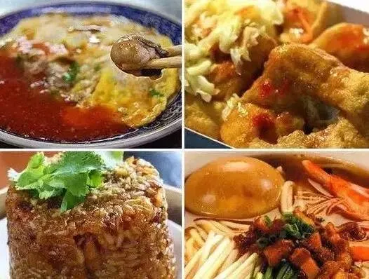 台湾小吃就不用多说了,还真是到台湾吃的才正宗。凤梨酥、蚵仔煎、卤肉饭、盐酥鸡、甜不辣、担仔面、鸡排、十全药炖排骨、阿婆铁丹蛋和淡水鱼丸、永和豆浆、螃蟹羹、鸡肉饭、蚵仔面线、炒花枝、菜脯蛋、鱼羹、卤肉饭、肉臊饭、担仔面、旗鼓饼、木棉酥、牛轧糖、木瓜牛奶、旗山枝仔冰…