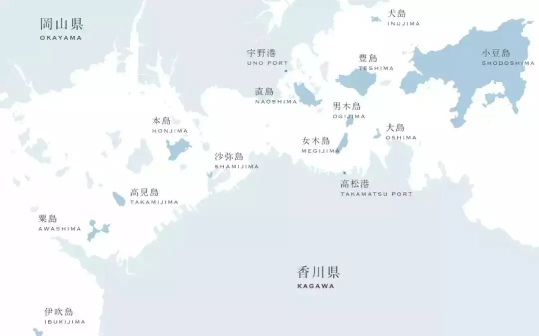艺术祭举办地遍布濑户内,从之前的几个主要岛屿扩展到现在的12岛、2个港口,由固定班次的渡轮连接。