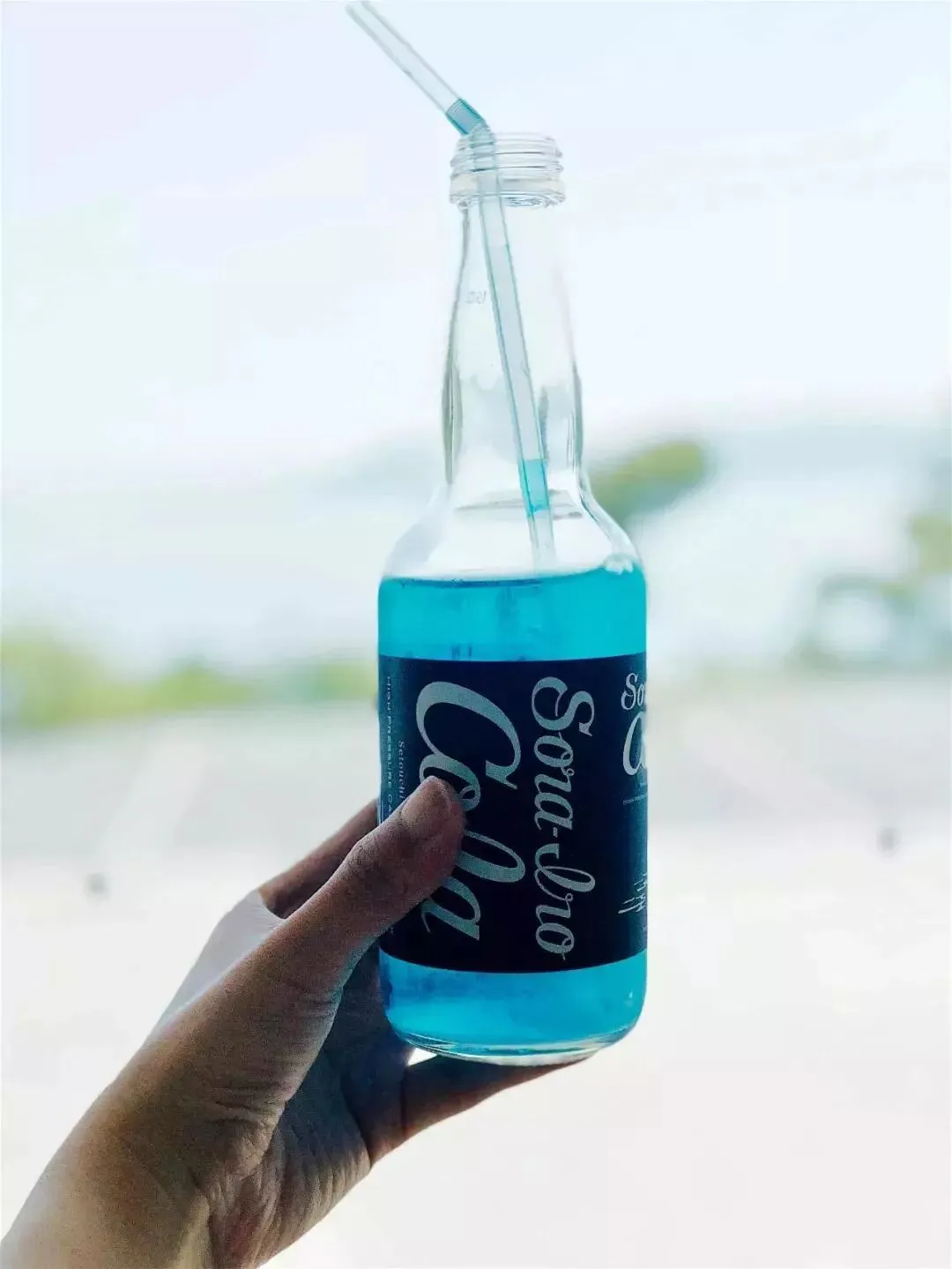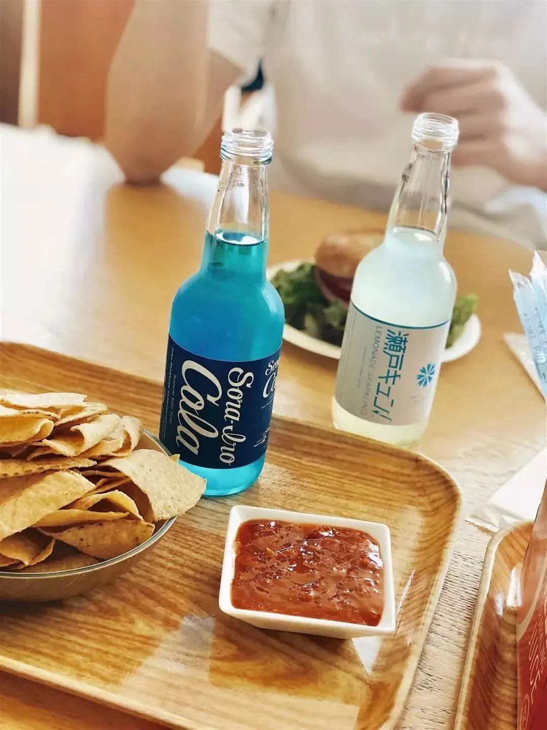 记得挑面朝大海的特等席,落地窗将海平线完美地框起来,直直撞入视线,和手里的蓝汽水一起,把濑户内海的夏日装进胃里。