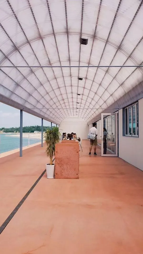 丰岛上很多餐厅都设计感十足,大海餐厅纯白的外观结构轻盈,视野开阔,整体纤细而开放,还有一个大花园,是“面朝大海春暖花开”的现实版。