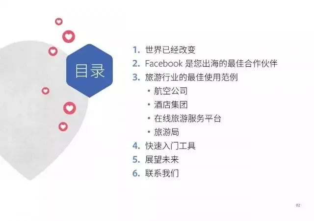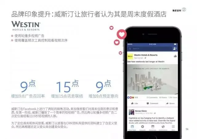 《2017Facebook旅游行业海外营销手册》完整版如下,其中也有涉及到酒店集团的最佳使用范例,威尼斯人、威斯汀、ClubMed等酒店集团都有被翻牌,希望从FB视角出发的这篇总结可以为你带来一些灵感。