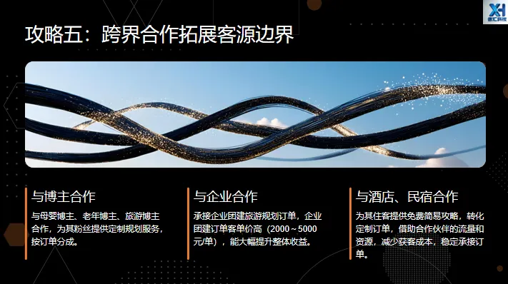 特殊定制(求婚 / 蜜月):1000 元以上获客渠道:小红书 / 抖音发案例、猪八戒网接单、线下合作旅行社 / 母婴店。