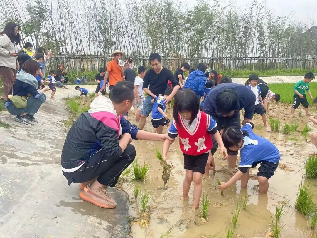 他们先在景区游览上古劳圩商业街,参观王老吉博物馆,了解王老吉文化及本地名人王泽邦历史; 接着到商业街咏春会馆参观体验,了解咏春文化,解读梁赞故事; 到童梦村乐园体验飞鱼小火车、龙之舞; 在鱼蔬农场,了解桑基鱼塘、果树农植、蟹稻共生传统生态农耕技术和鱼菜共生技术。在工作人员的指导下,孩子们还挽起袖子和裤腿,下地体验插秧,切身感受“春种秋收”的自然循环规律与生态农耕劳动之乐,现场充满了欢声笑语。