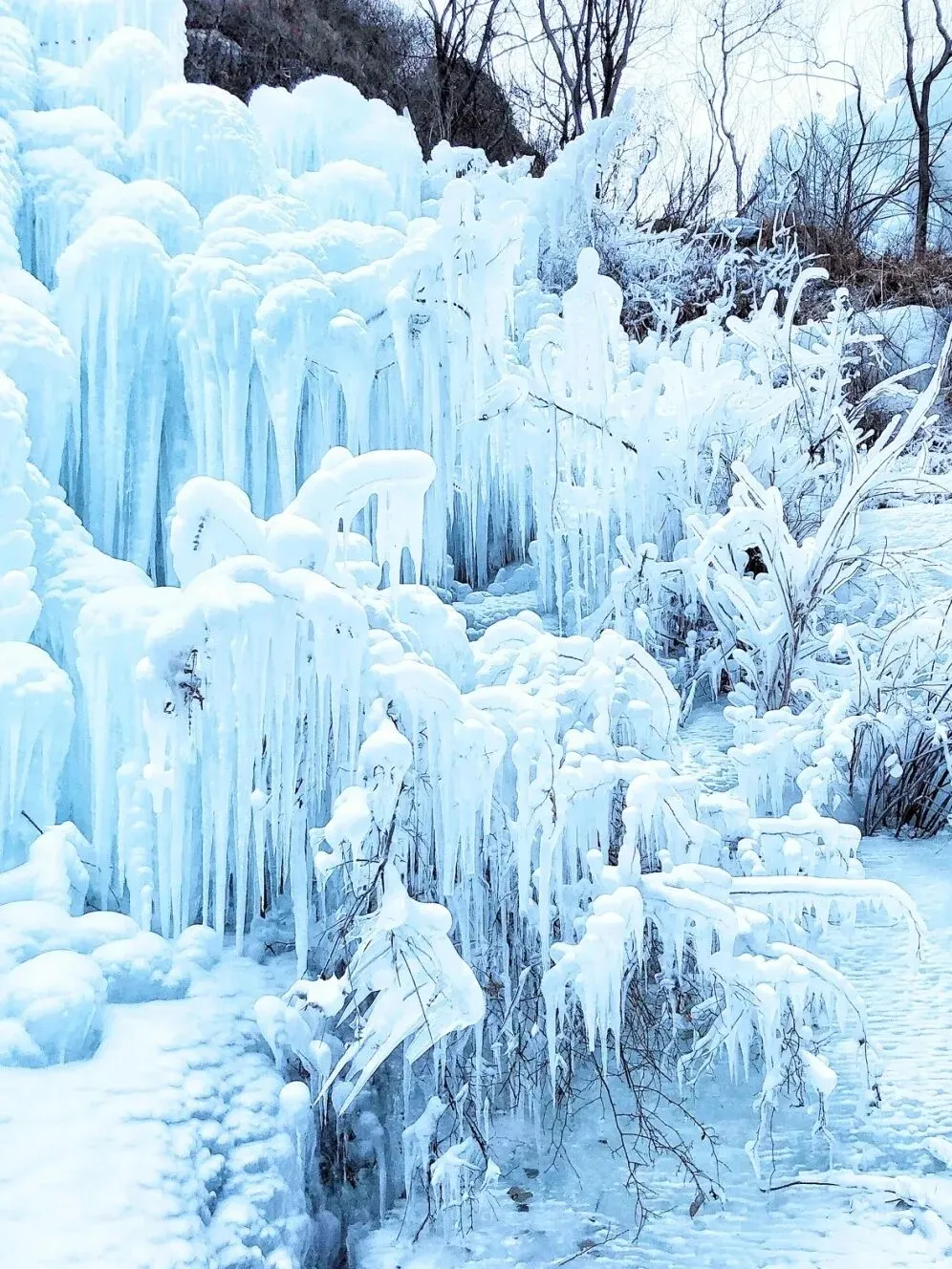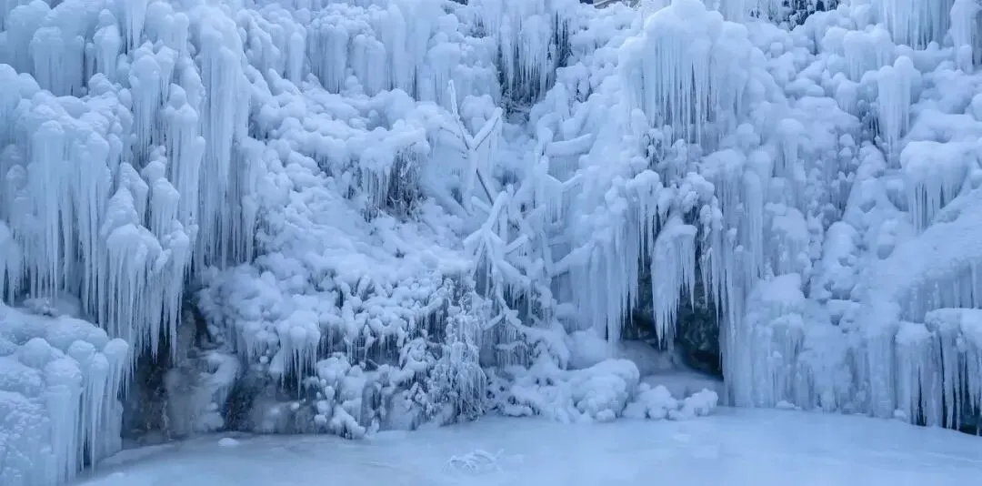 凝结成一道道美丽的冰瀑奇观