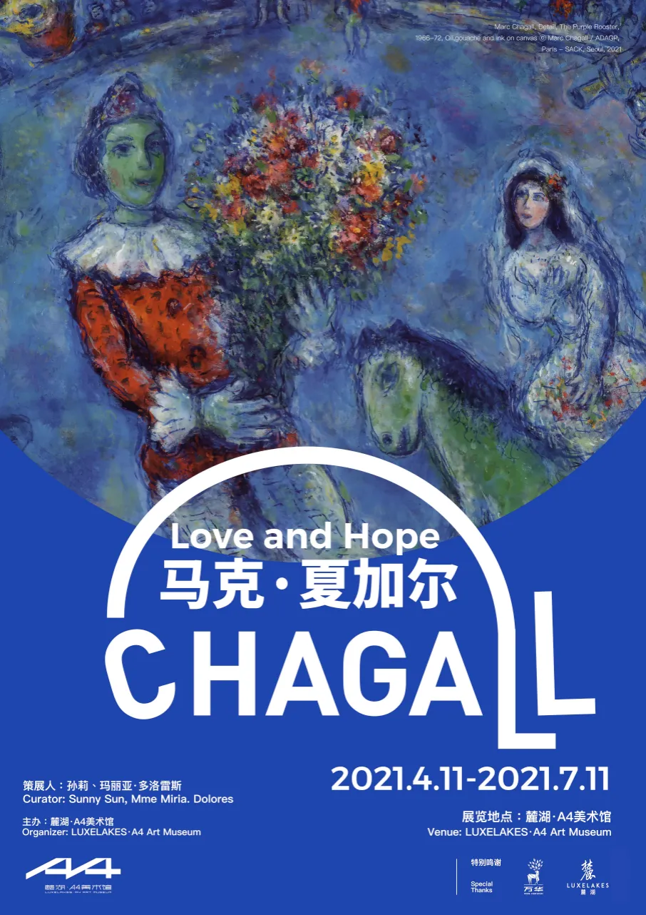 A4美术馆以“爱与希望”为主题、七个板块为线索,呈现了包含从夏加尔早期的绘画探索、成熟时期的油画、插画,以及,极少完整展出、被艺术史家誉为经典传世版画。