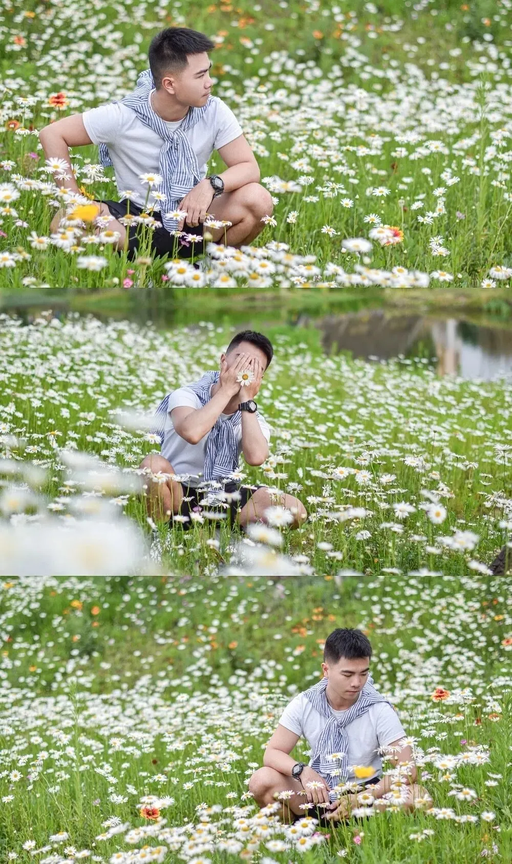 整个雏菊花海是在湖边,拍出来的杂物更少,画面也很干净。最绝的是有一片开在起伏的山坡,有高度的落差,可以作为完美的背景,拍出满屏花花的感觉。