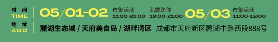 还有改装车街头秀、美味交换站、落日酒吧、乱蹦趴体…数都数不完的活动,让你放肆嗨玩五一!