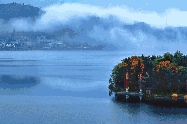马湖的景点一点也不单调。除了游湖赏花,你还能看云海,游船,露营。湖心金龟岛上还有孟获殿,孟获的故事还在这里流传。