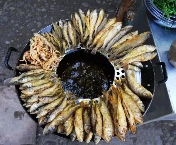 刚刚钓起来的小鱼,现在就最适合拿来油炸了,炸的金黄的小鱼,里面都是鲜嫩雪白的鱼肉,蘸点干海椒面,简直是销魂。