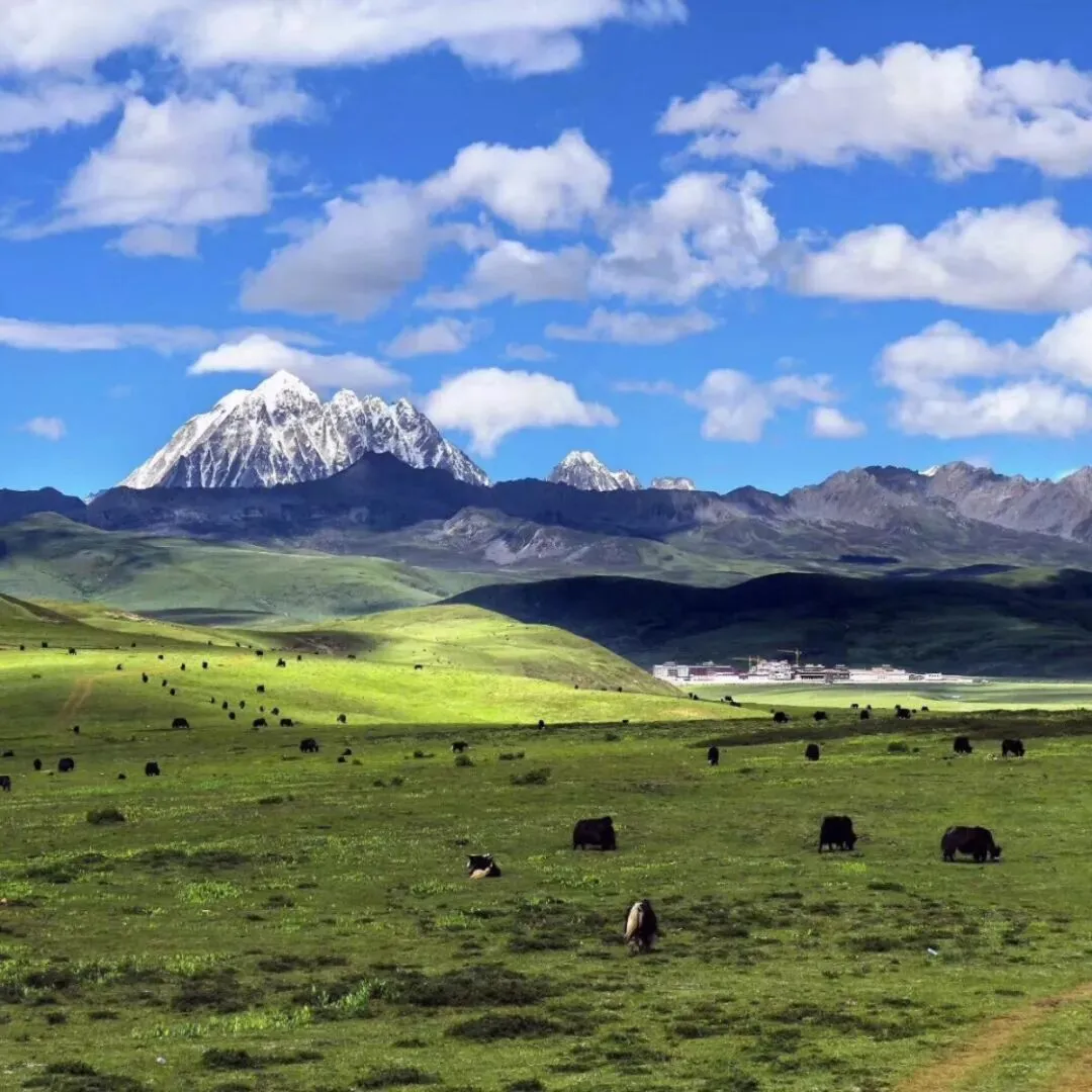 马儿就在草甸上漫步,牛群偶尔发出哞哞的叫声,只听得到风声和鸟叫,呼吸而入空气都带着一股清甜。