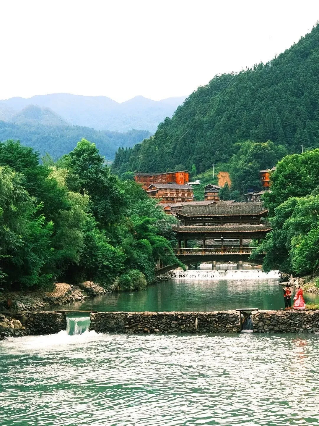 立于山间的廊桥犹如横波,山色空蒙如烟如黛,随便一拍都能刷爆朋友圈。