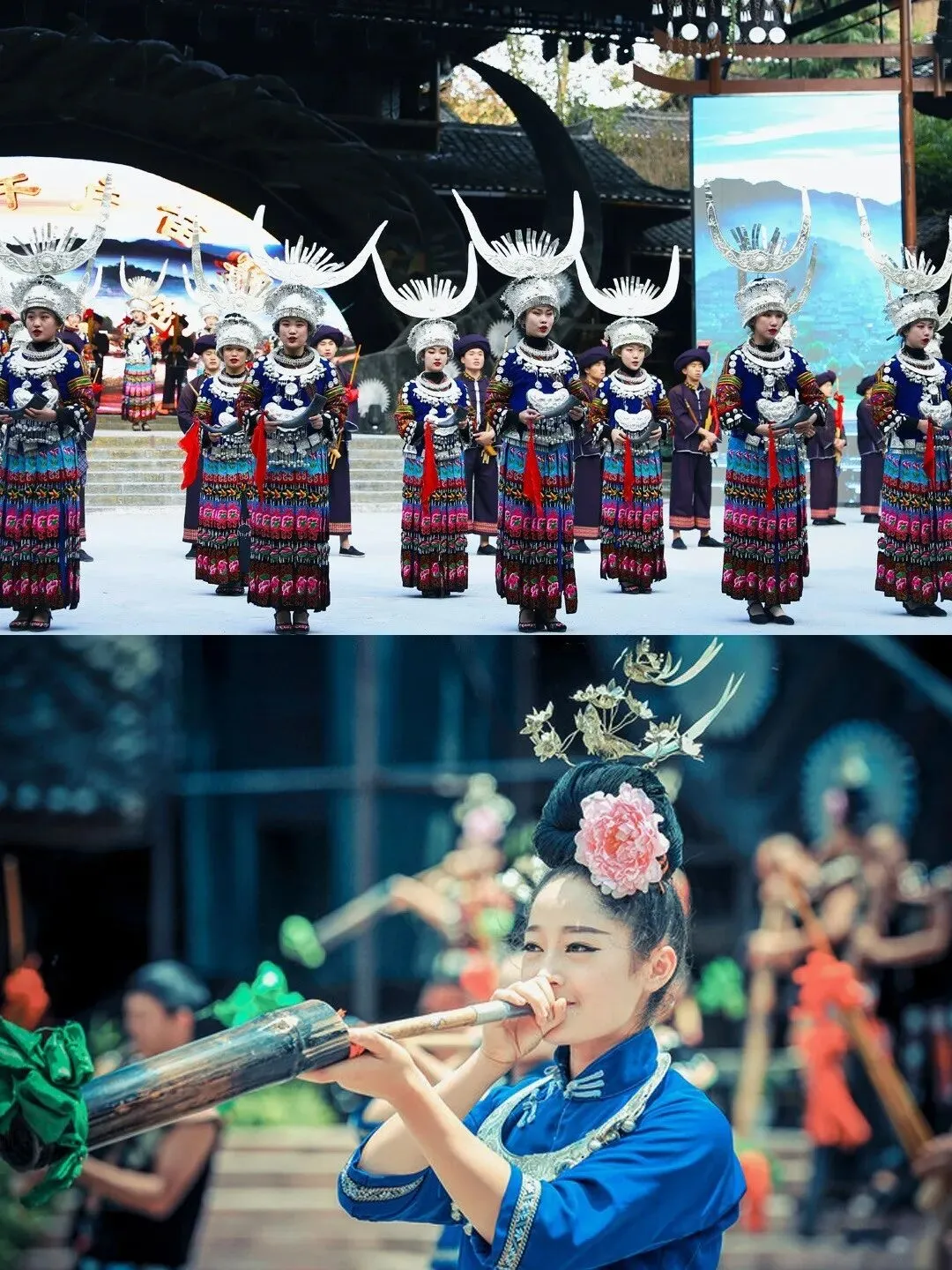 全天上演的苗寨特色表演,搭配上绚烂的灯光效果,让你一起融入到载歌载舞的氛围中去。特别提醒,白天的演出基本免费,晚上就收费咯。