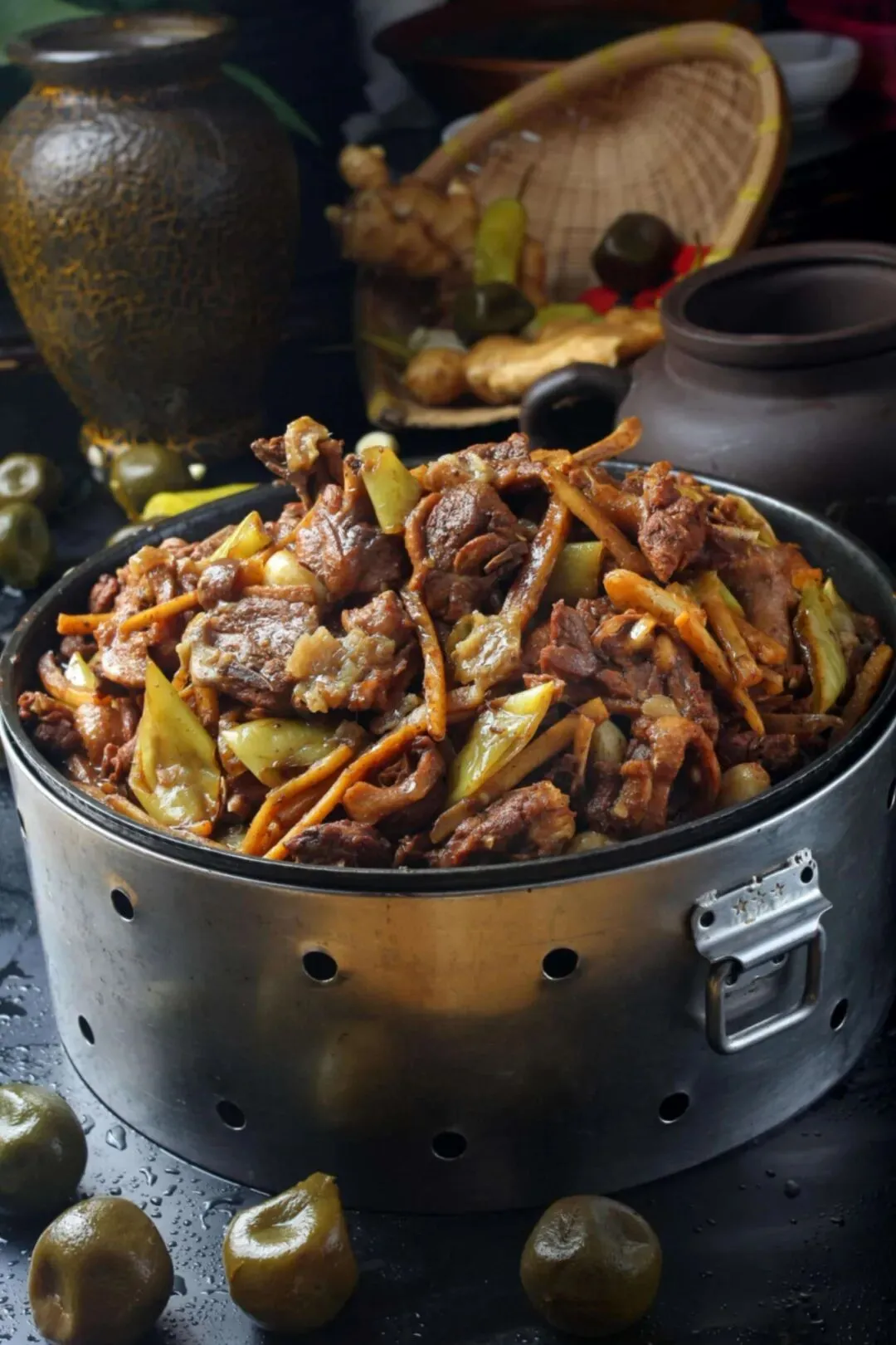 高峰柠檬鸭,广西南宁武鸣一带的特色菜。肉肉鲜嫩的鸭肉酸辣椒、酸芥头、酸姜酸柠檬、酸梅、生姜及蒜泥煨熟后,淋上香油即可开吃,喜欢酸辣口感的话一定要尝!
