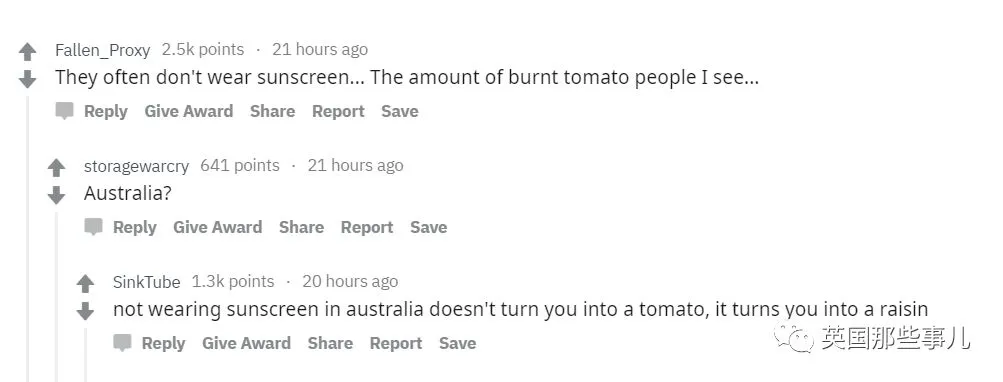 “经常会有游客来澳州不擦防晒霜...我见了好多个被太阳晒红肤色媲美西红柿的人....”