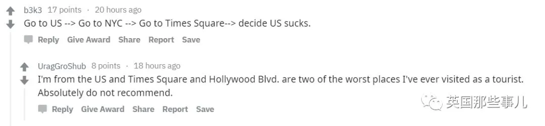 “我也来自美国,我只想说时代广场和好莱坞大道是我作为游客去过最垃圾的两个地方,真心一点都不推荐!”