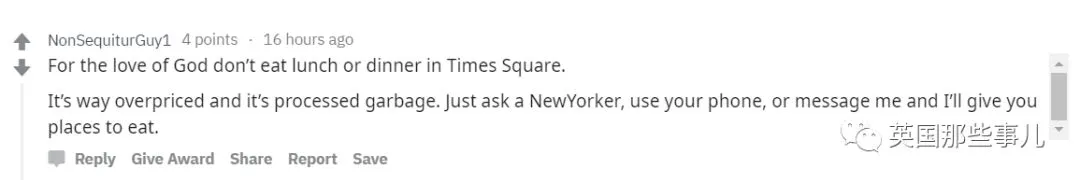 “我的老天爷...来美国的大家真的真的不要再跑去时代广场周围吃饭了,