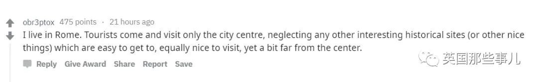 “本人住在罗马,我发现很多游客来罗马只是去看了市中心区域,而忽略了其他一些好玩有趣的历史景点,这些地方其实很方便去的,只是离市中心有点远而已。”