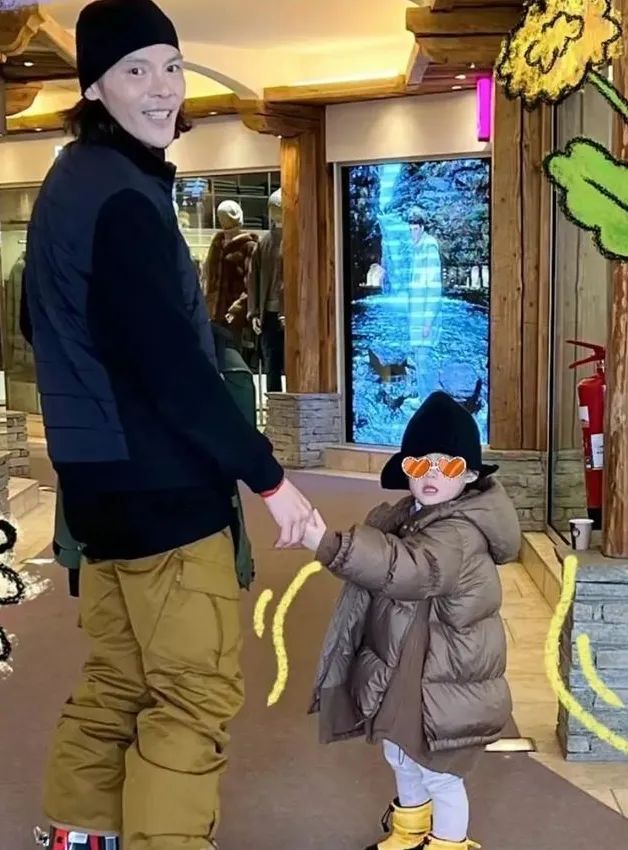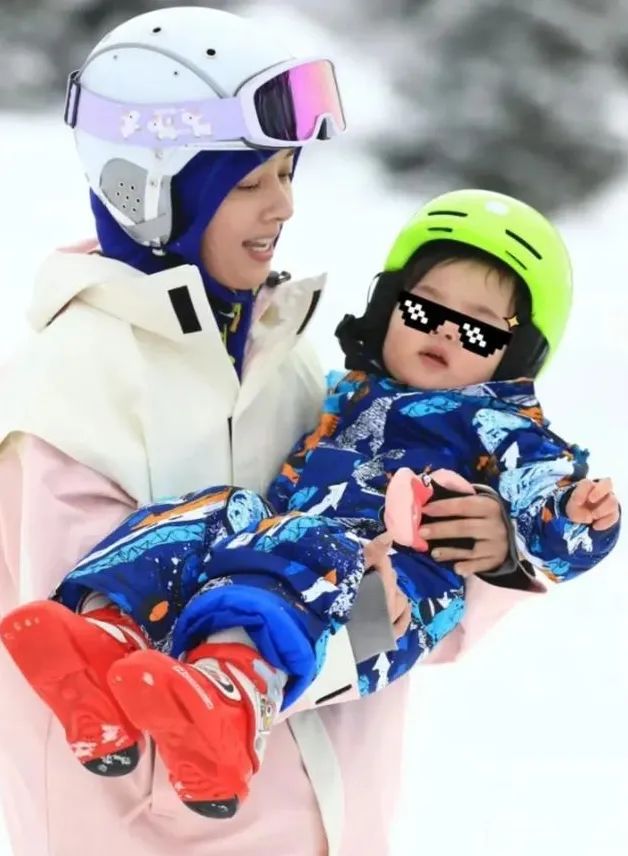 小儿子戴着墨镜,神情呆萌,一家人的幸福画面让人不禁为之一笑。