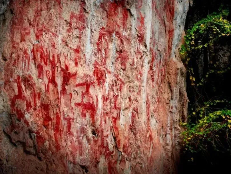 沿着秀美的明江游览,喀斯特地貌令人沉醉,沿江的岩壁上是世界文化遗产——花山岩画。一个个赭红色的图案犹如“无字天书”,内容丰富、形态各异、保存完整,一个个花山小红人真实反映了消逝久远的骆越社会生活情景。