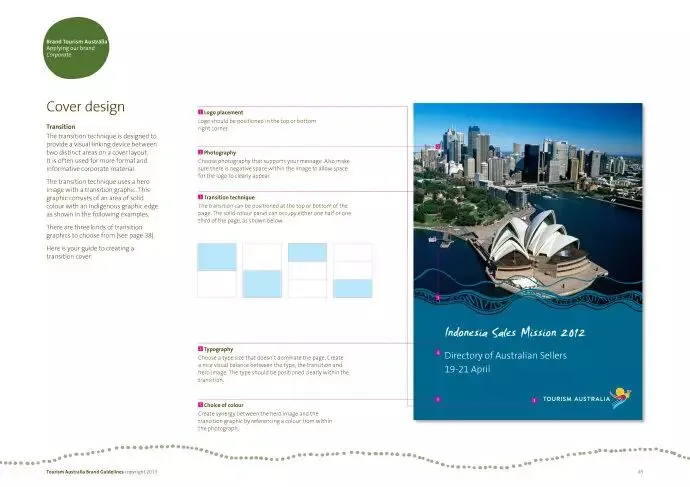 您现在的位置是:首页 > 国内旅游目的推荐 > 正文 国内旅游目的推荐 澳大利亚旅游品牌指南VI手册 admin2026年04月15日 11:58:09国内旅游目的推荐2 澳大利亚旅游品牌指南VI手册商业设计赵海存【新会员】点击标题下↑蓝字↑关注我! 转载请说明来源于"旅荐网",部分内容转载自网络,如有侵权请联系qlwl@foxmail.com删除 本文地址:https://www.15386.cn/post/155044.html 上一篇 收藏!三亚环岛旅游公路旅游产品手册(网红打卡地)发布 下一篇 心动出游指南 相关文章 【西葡】旅行,西班牙+葡萄牙攻略 日本旅游,关西机场入境“傻瓜”指南 | 全流程图文攻略指引 滨州旅行不迷路!超详细攻略,带你玩转这座黄河名城 超全面的三星堆旅游攻略 一生必打卡!中国最值得去的5大5A景区攻略 被严重低估的旅行地!山西+陕西,附超详细攻略 2026年中央电教馆《研学旅游指导师》技能培训认证项目正式启动! 海东特种兵一日游|大理春季旅游攻略!!! 2026新疆旅游避坑指南:为什么全网都在推荐领队阿木? 本地人私藏!南阳最全游玩攻略,吃住玩一网打尽 发表评论 取消回复 评论列表 这篇文章还没有收到评论,赶紧来抢沙发吧~