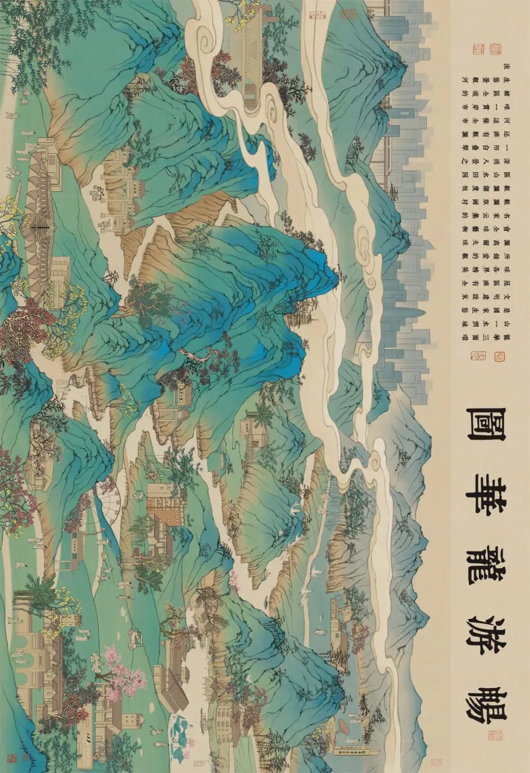 手绘地图的设计采用了水墨画和版画元素,运用“蒙太奇”手法,结合龙华山水画的古朴、写意等特点,以青绿山水画为主导,通过下、中、上三部分景致的描绘,展现龙华全域旅游面貌。