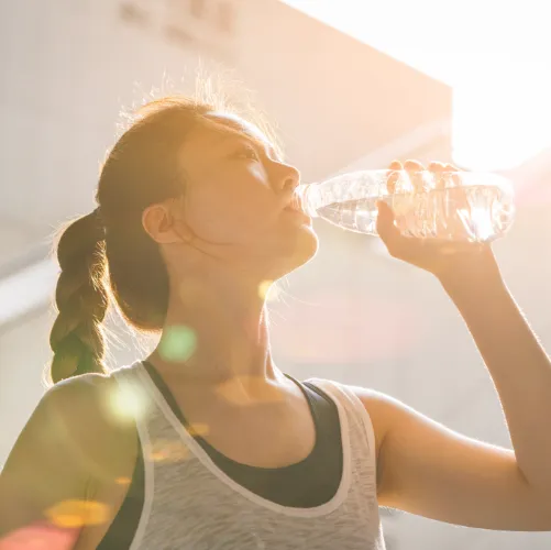 ⏩一定要勤喝水,不要等口渴了再喝。同时身体中钠、钾、钙、锌、铁、B族维生素、维生素C等微量元素会随着汗液被带走[1]。如不及时补充会出现疲惫无力、抽筋等情况。可以适当喝运动饮料,平时多吃蔬菜、水果,必要时补充营养补充剂。