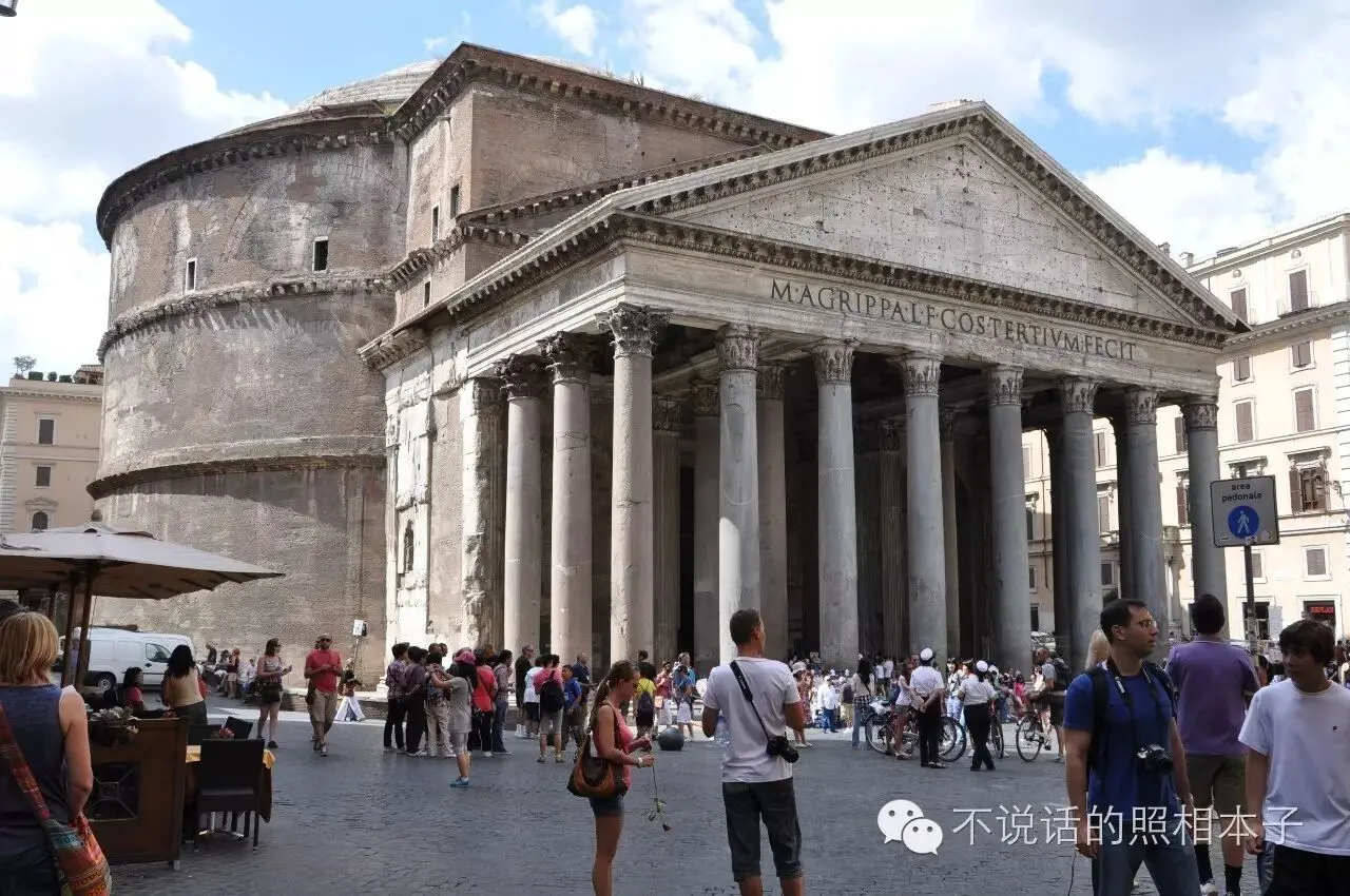 2. 万神殿(Pantheon)——始建于公元前27-25年,公元80年毁于大火,公元120年又重建。它由罗马帝国首任皇帝屋大维的女婿阿格里帕建造,用以供奉奥林匹亚山上诸神。 Pan指全部,theon是神的意思,指必须供奉罗马全部的神。所以万神殿最初供奉的是罗马诸神。
