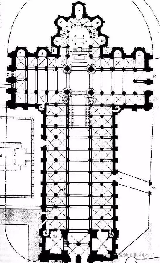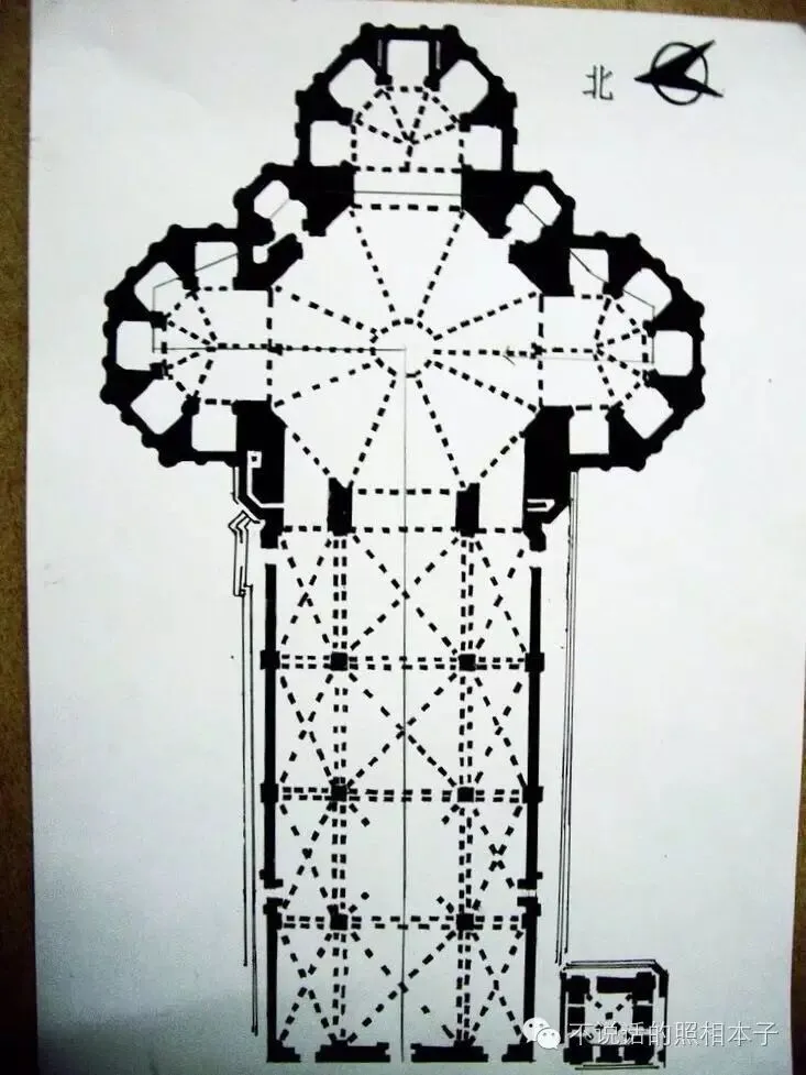 大教堂剖面图,非典型的拉丁十字(这在当时是会被教会当做异教建筑封杀的)