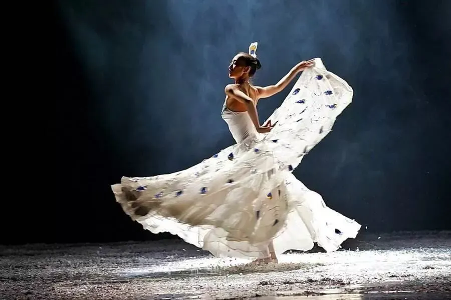 9月15日,百名汉服小哥哥小姐姐,与锦鲤共舞,上演古典曲艺。