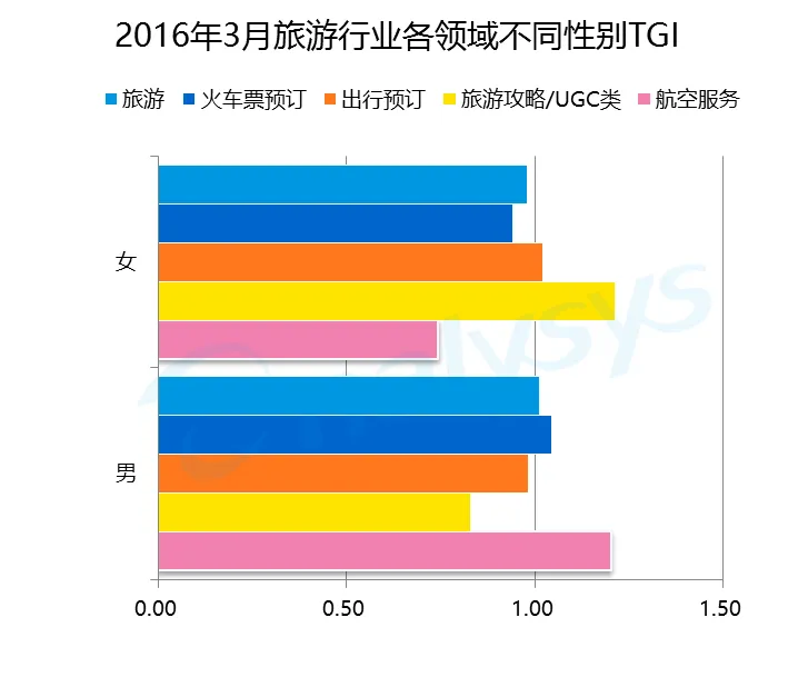 男性偏好于航空服务,女性则偏好于旅游攻略。▼