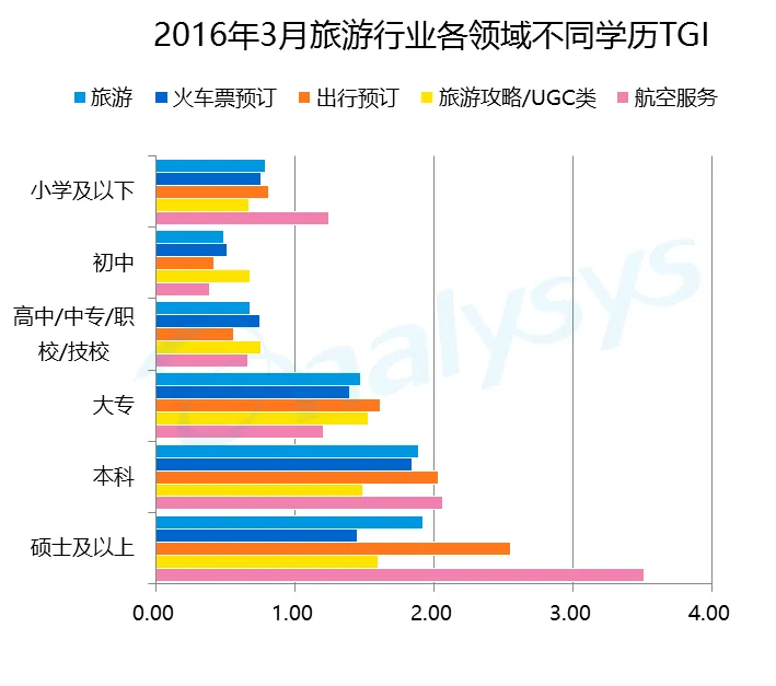 大专以上学历偏好旅游,硕士及以上学历对出行及航空服务偏好。▼