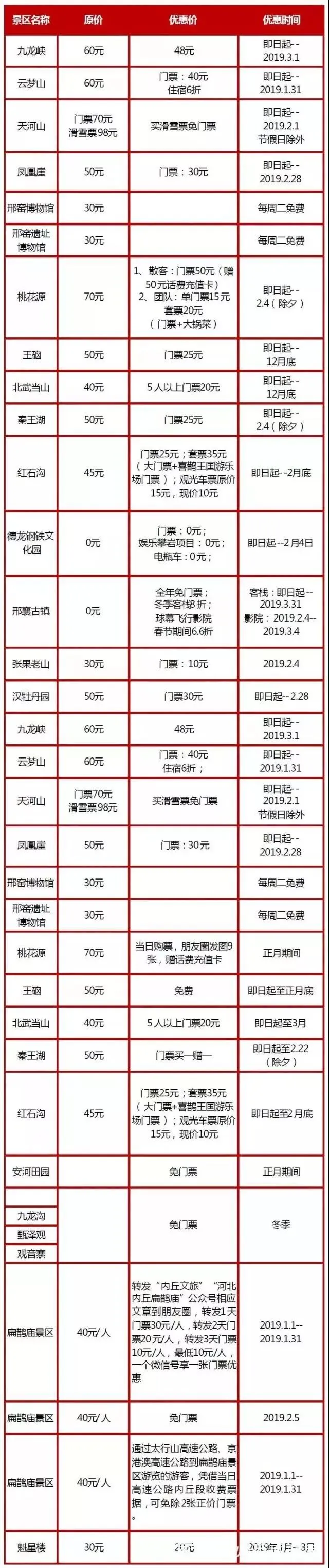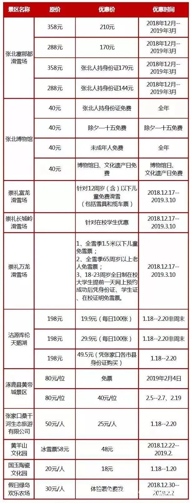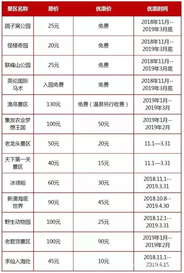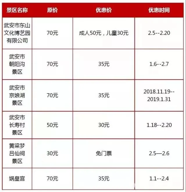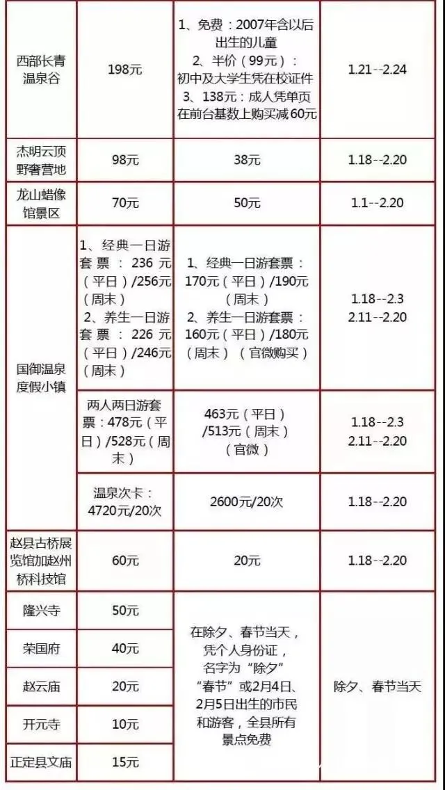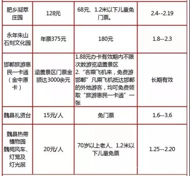(注:各景区价格与活动如有变化,请以景区实际情况为准。)