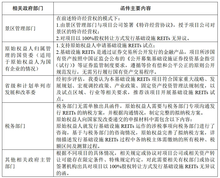 除《基础设施领域不动产投资信托基金(REITs)试点项目申报材料格式文本》所列示的基础设施项目投资管理手续合规性文件以外,景区类型资产的开发建设经营过程中可能还涉及以下文件:
