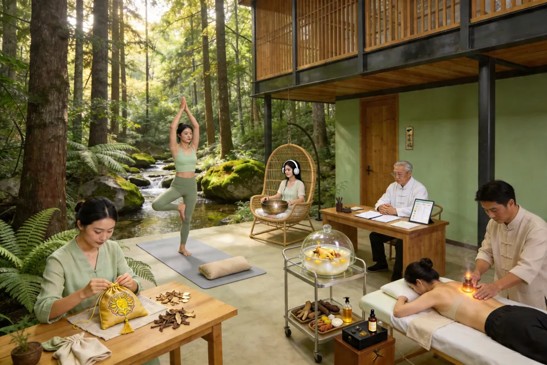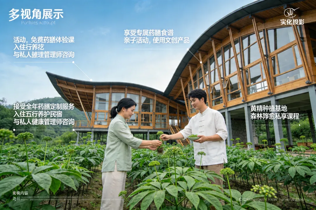 山居疗愈中心结合黄精“润肺生津”功效,设计森林瑜伽、黄精香囊制作、五行音疗等项目。联合中医机构推出“黄精九日康养计划”,包含体质辨识、药膳食疗、经络调理等定制化服务。