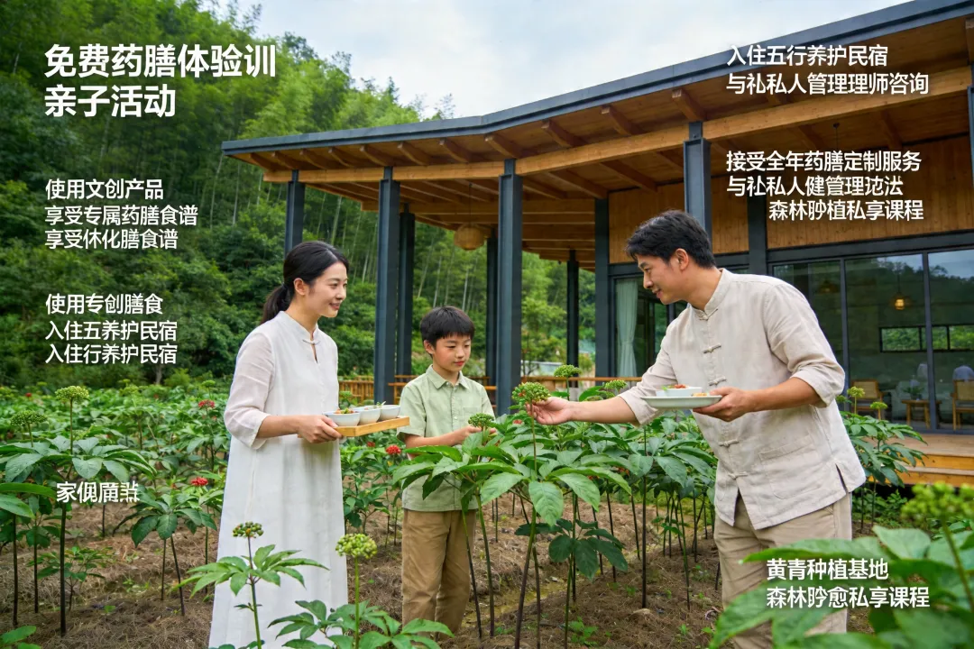 黄精仙使(年费3800元)含专属药膳食谱、五行康养民宿1晚/年、私人健康管理师季度咨询。