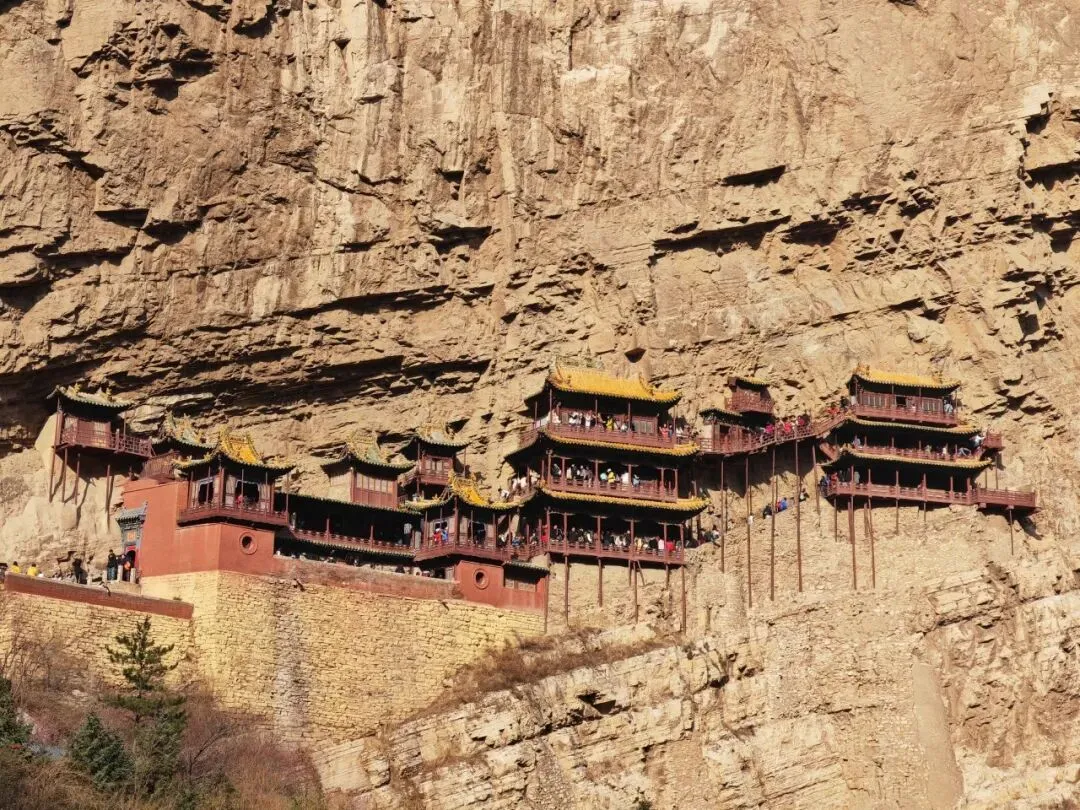 整座寺院悬挂在恒山峭壁上