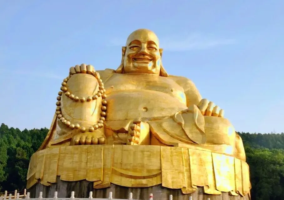 佛像通体高20米(也有资料称28米),采用110吨铜板焊接而成,外表覆盖有纯金金箔,在阳光下金光闪闪,非常壮观。