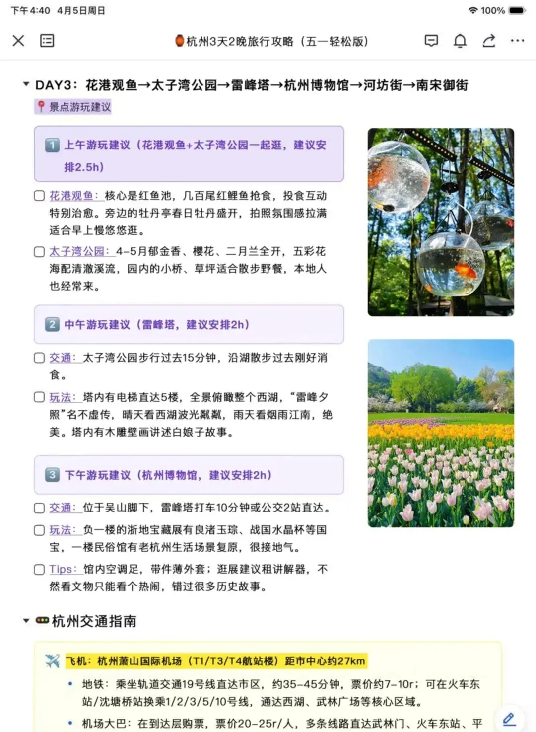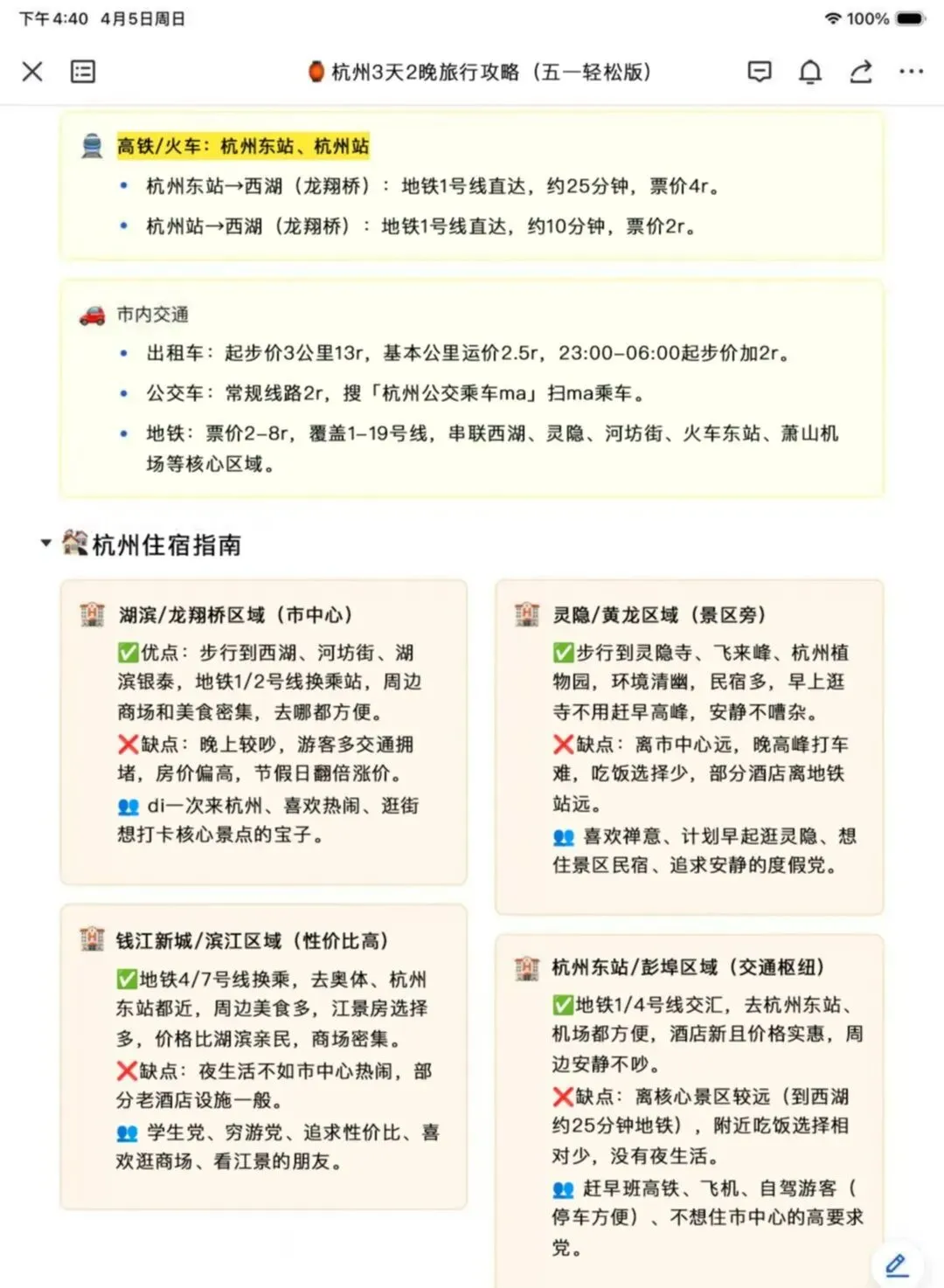 本J人对自己做的杭州五一旅游攻略甚是满意