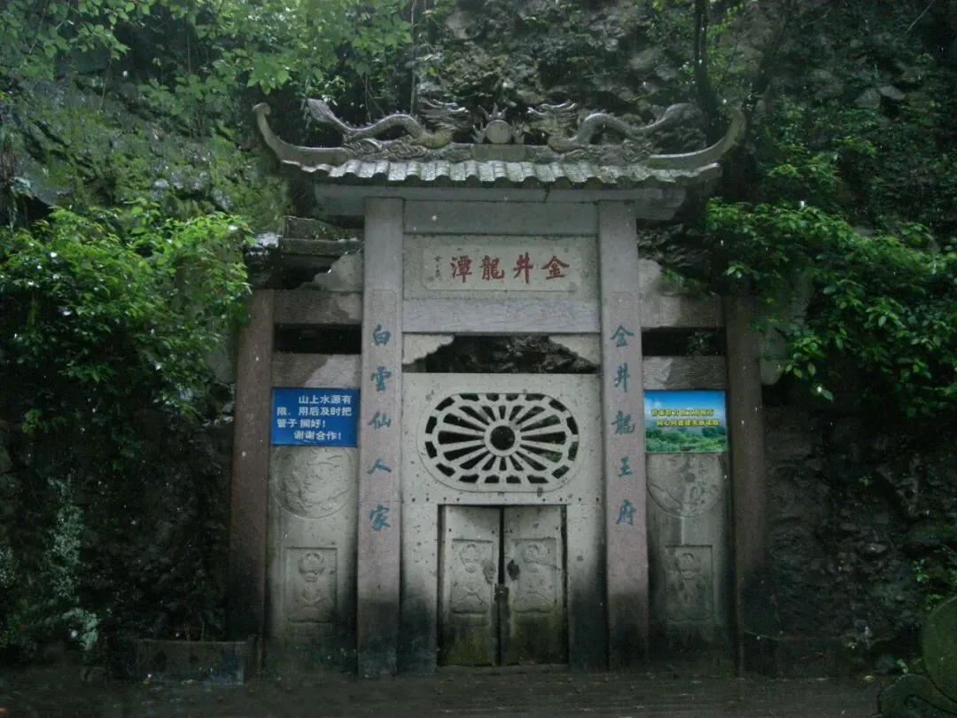【金井龙潭】元末明初时,朱元璋统领大军与张士诚为首的农民起义军在牌头一带展开血腥争战,朱军退隐到斗岩山上,也靠龙潭水度过了最艰难的时光。朱元璋做皇帝后为感恩斗岩龙潭,就敇封了斗岩龙潭为“金井龙潭”。