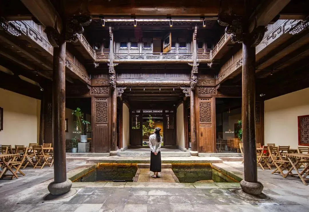 「白墙黛瓦马头墙,回廊挂落花格窗」,两栋古楼仿佛是从水墨画中淡出,浮现于眼前,石雕精美,古朴斑驳,庄重大气。来一尺花园(西施故里店)喝一杯下午茶吧!漫步于此,处处是景,领略古越吴地之风雅,感受美于东方,中国传统建筑空间的魅力尽显于此。